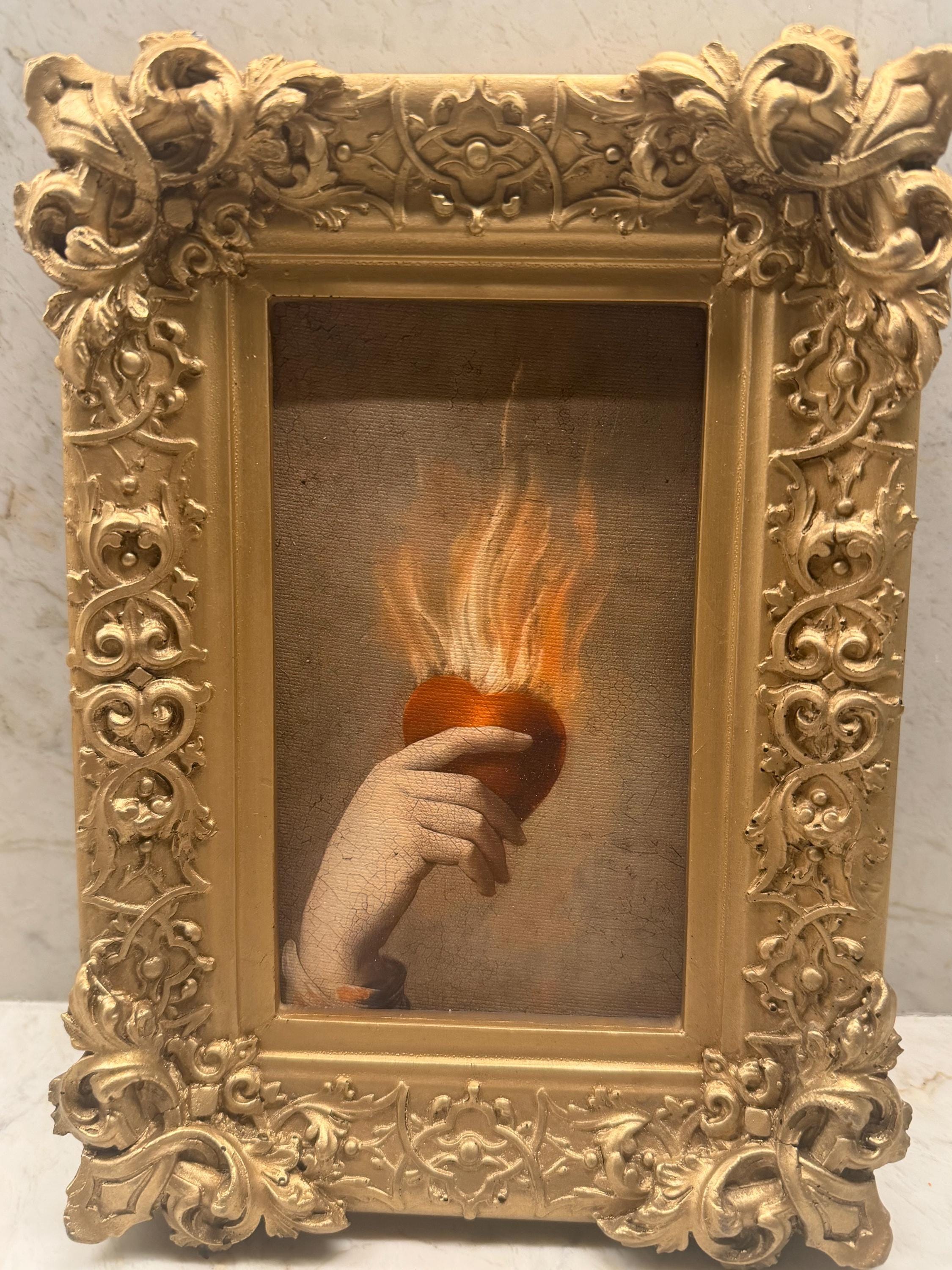 Heart from Allegory of Charity by Francisco de Zurbarán (c.1655), cropped down to the flaming sacred heart. Now we’re in the realm of holy intensity, Baroque drama, and centuries-old symbolism... reduced to one fiercely committed organ on fire. It’s serious and devotional. It’s so old it practically radiates incense.