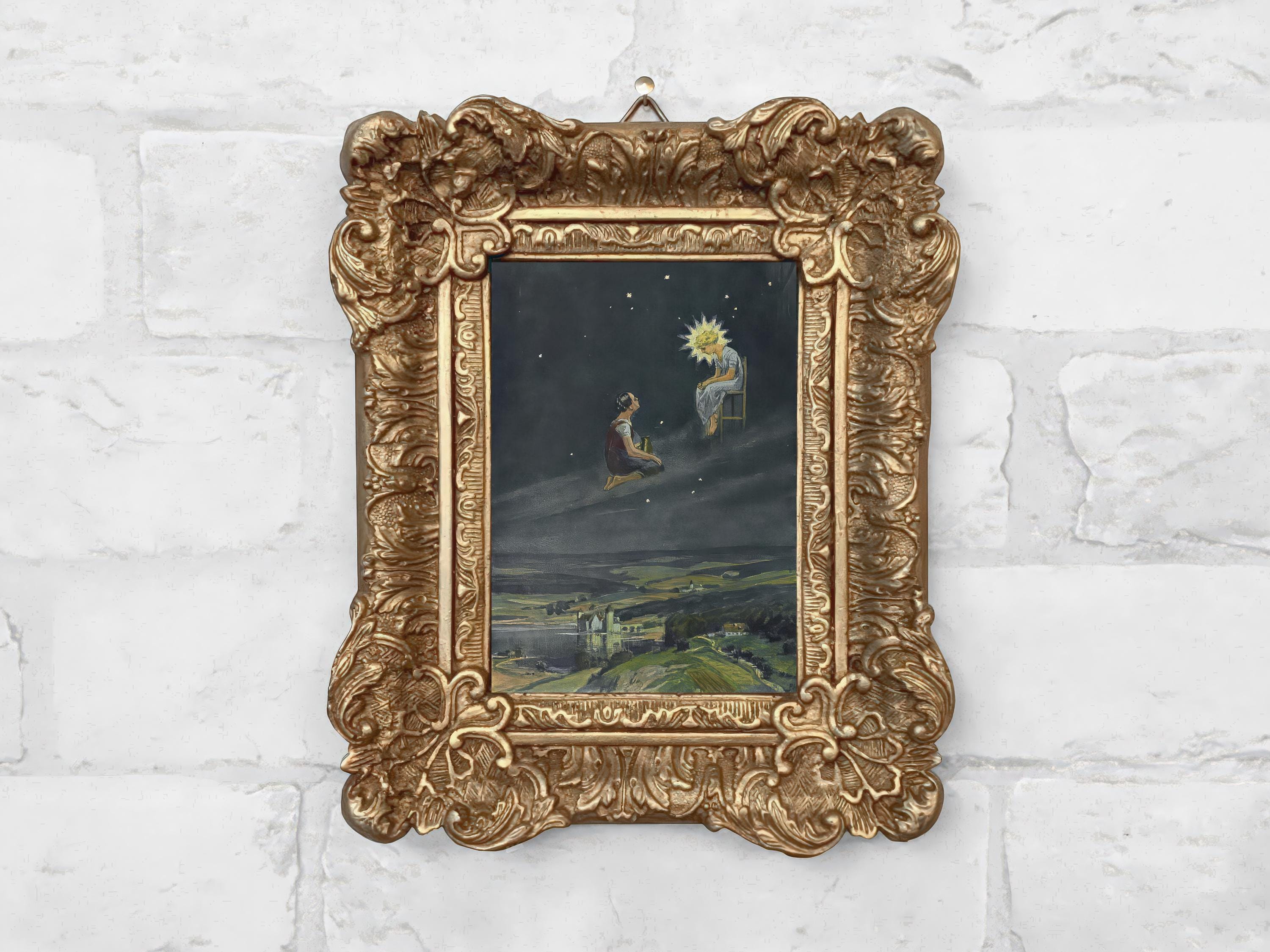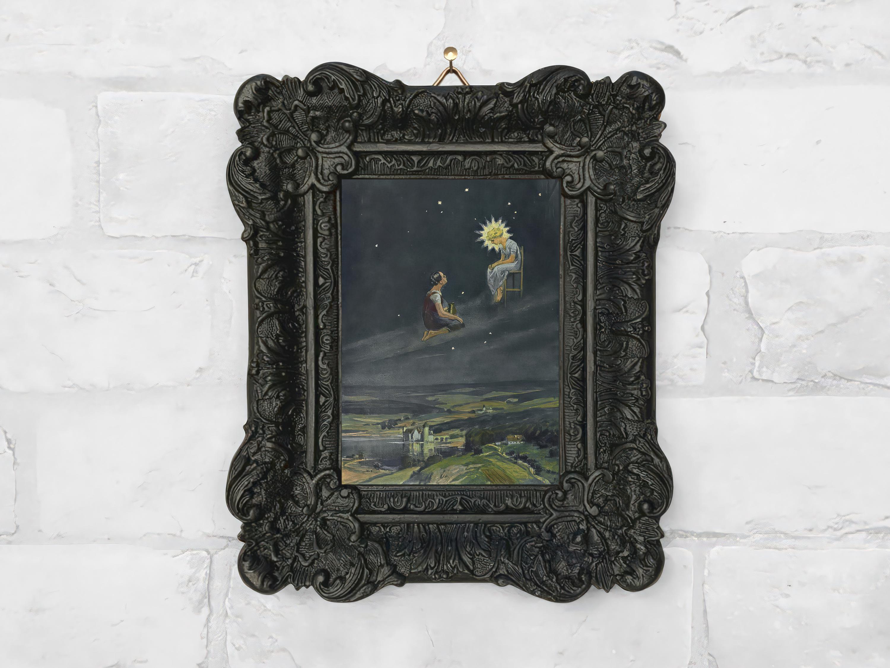 Miniature framed art print of a vintage fairy tale illustration. Perfect for storybook gallery walls, enchanted forest decor, and whimsical art lovers.