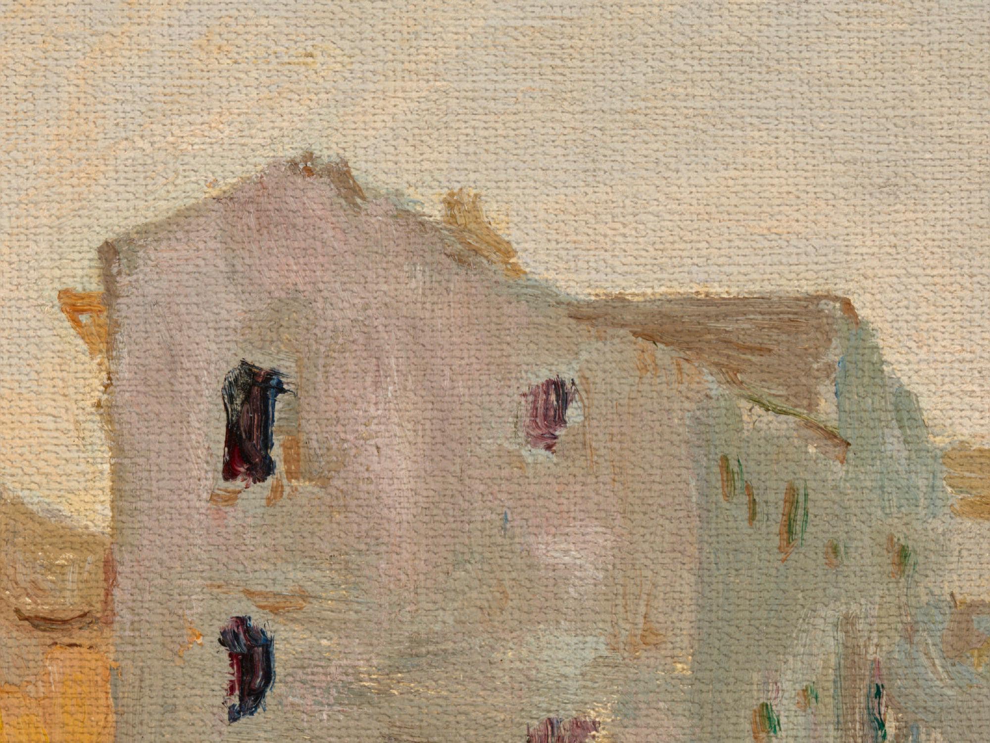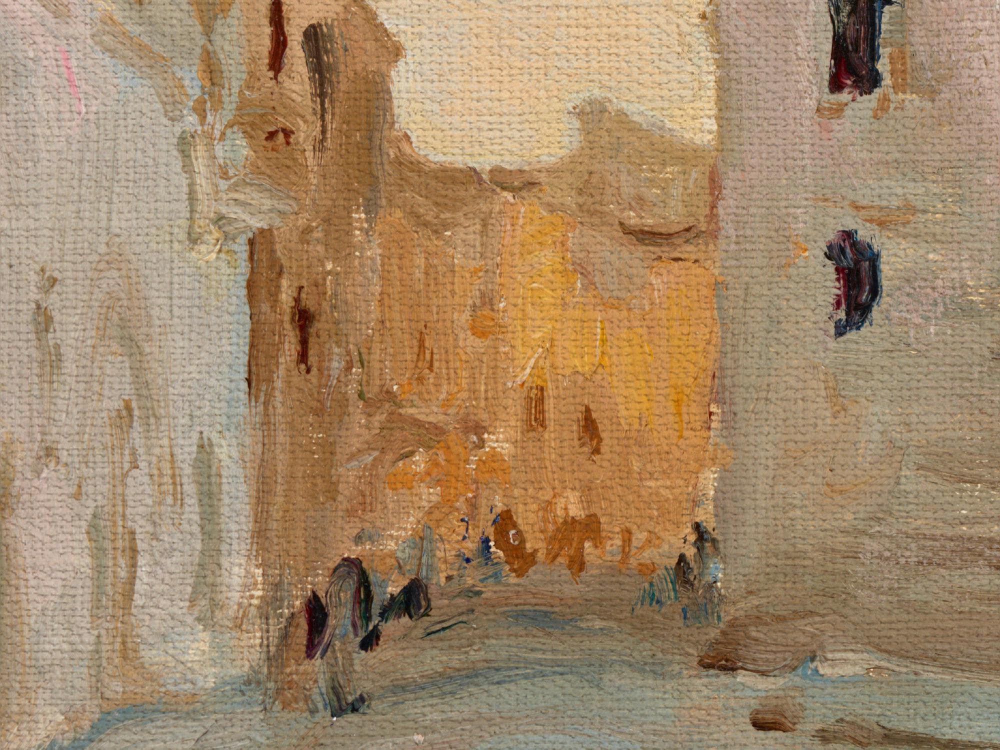 Syracuse (Architectural Fragment) by Jan Ciągliński (1910) captures the golden architecture of Sicily in warm Mediterranean light. Rather than painting the city as a postcard view, Ciągliński focused on a single architectural fragment - a sunlit corner that feels both ancient and alive. He belonged to the early wave of Polish Symbolists who traveled through Europe chasing color and atmosphere, and this work shows that sensibility in full force: painterly brushwork, shifting light, and a sense that history itself is glowing through the walls.
