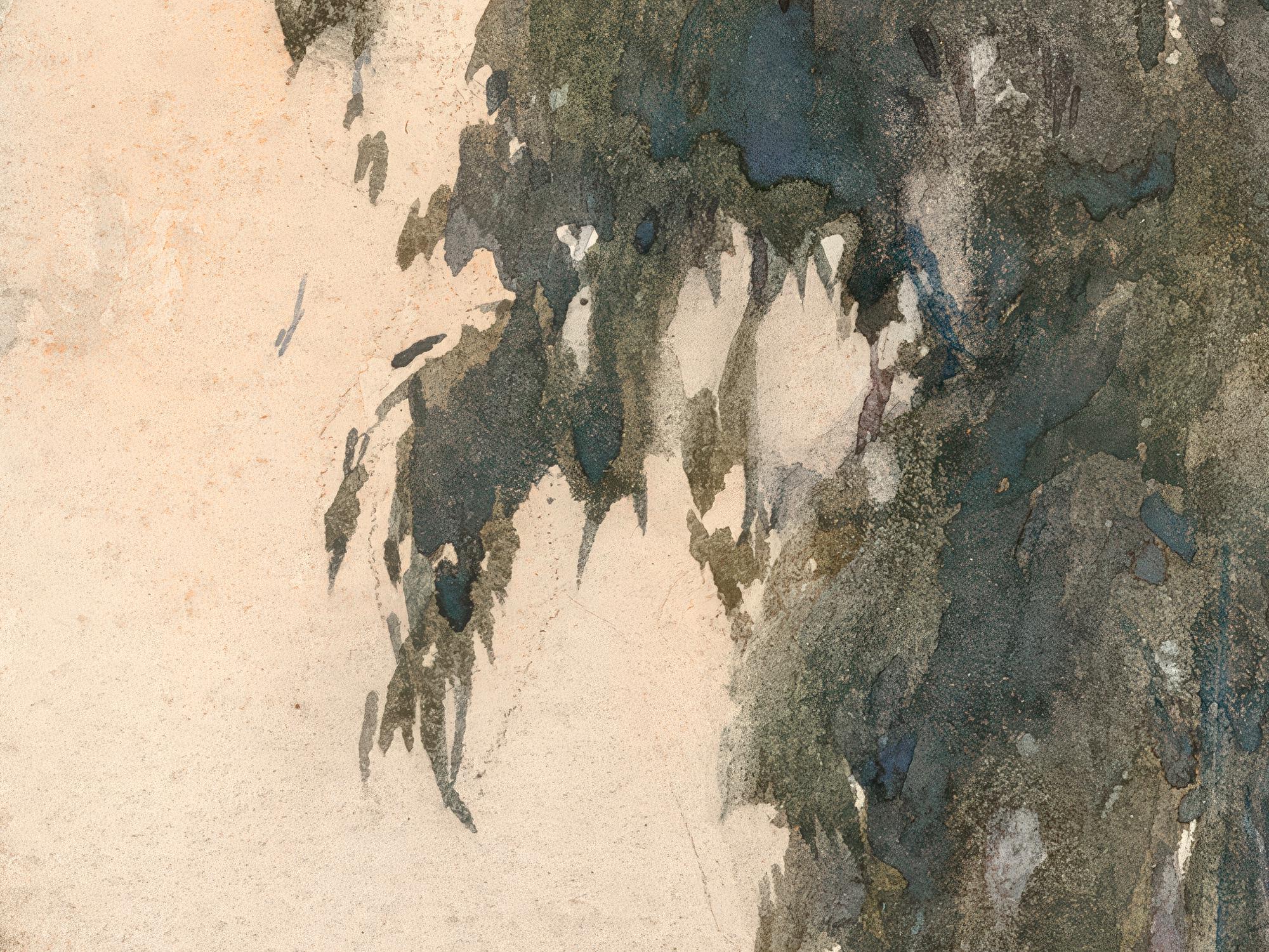 This small watercolor painting reproduction is printed on a heavyweight and thick textured art paper and paired with a handcrafted frame cast in Hydrostone plaster, using a mold from a 19th-century antique. Finished in-studio to capture the texture and patina of a real vintage frame, it offers all the beauty of an heirloom – without having to inherit it. Available in aged gold or classic black, depending on your mood (or your wall).