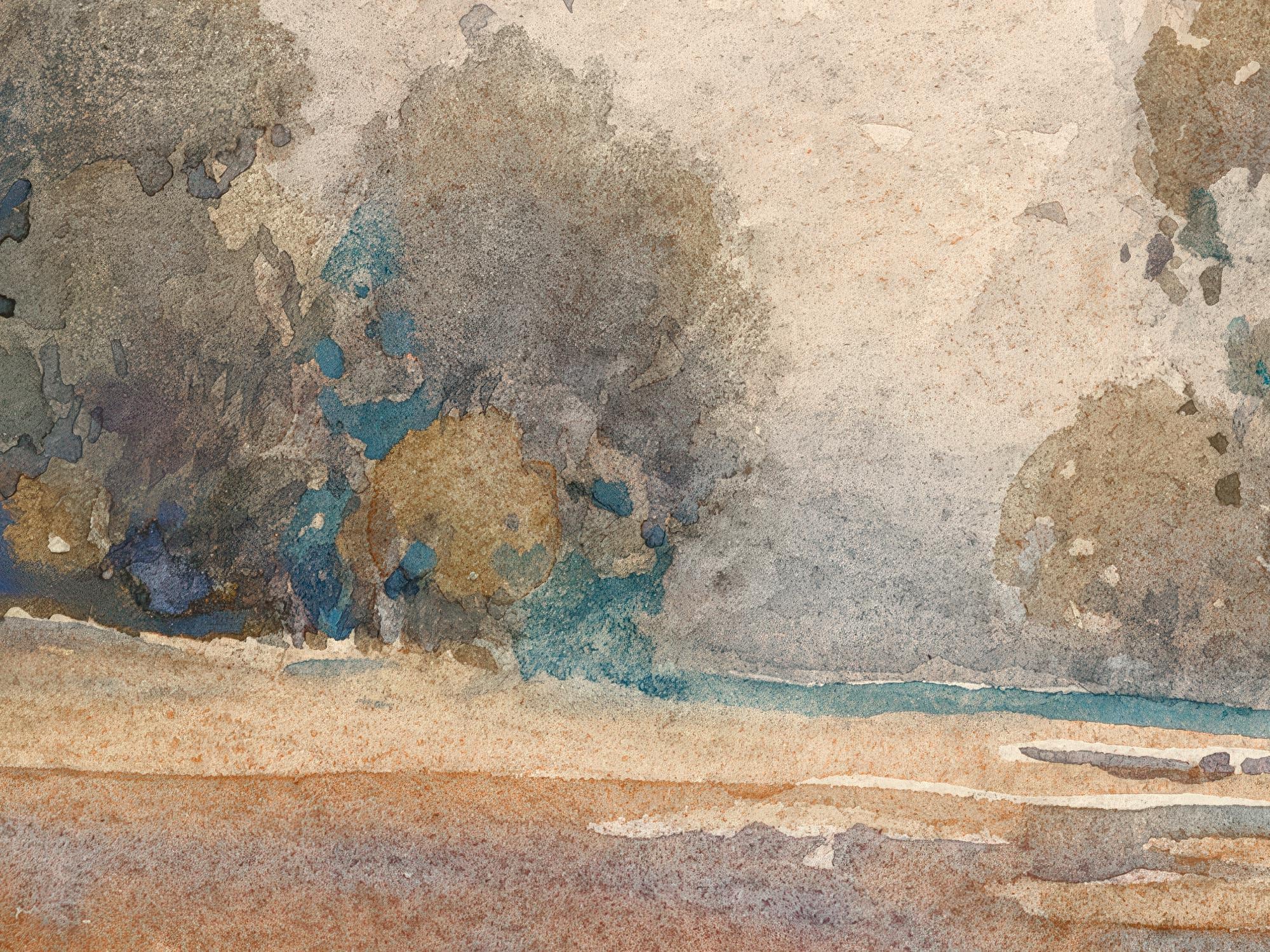 A miniature framed antique watercolor landscape reproduction. Subtle, tonal landscape art for traditional, vintage, and softly modern interiors.