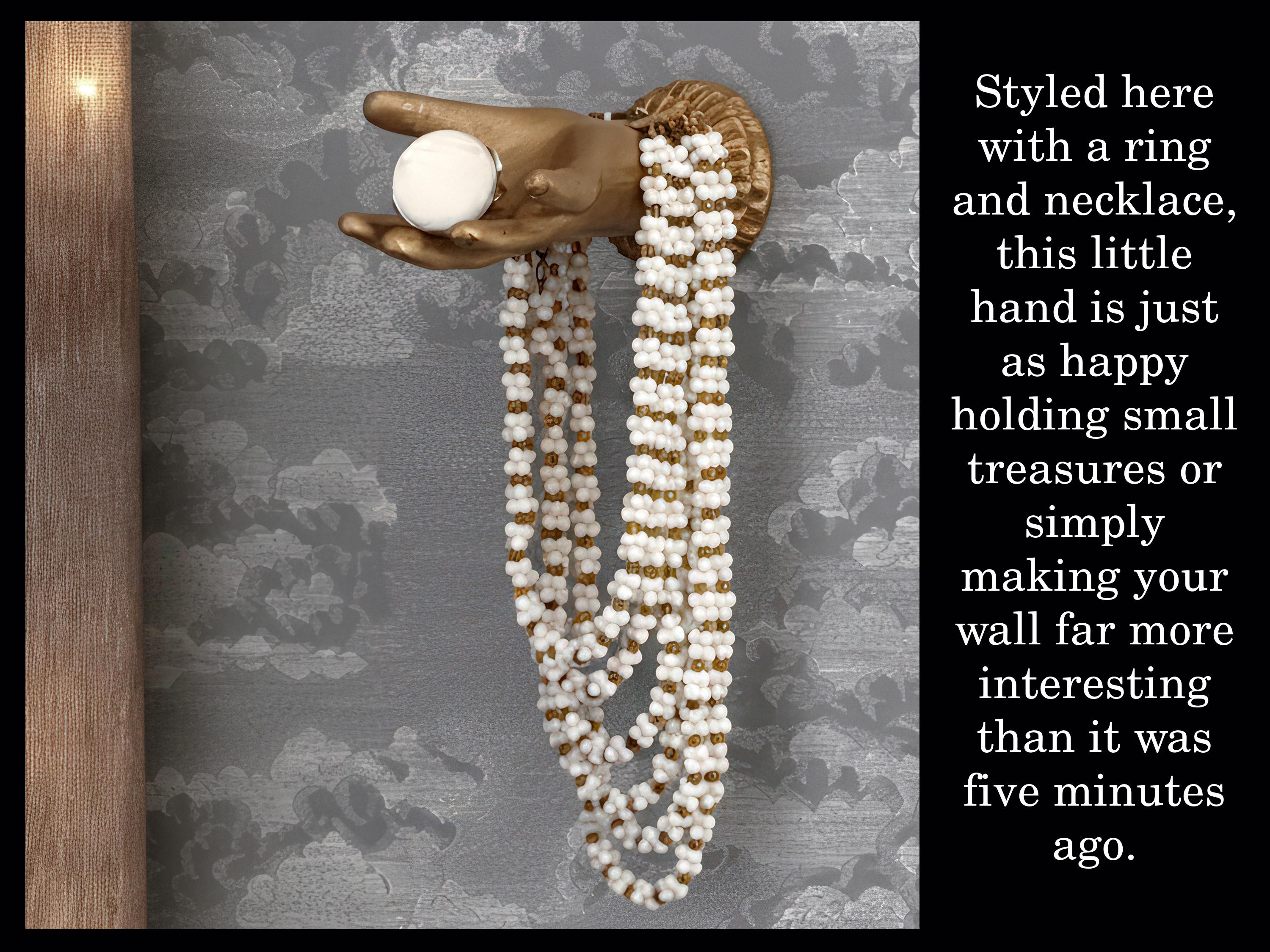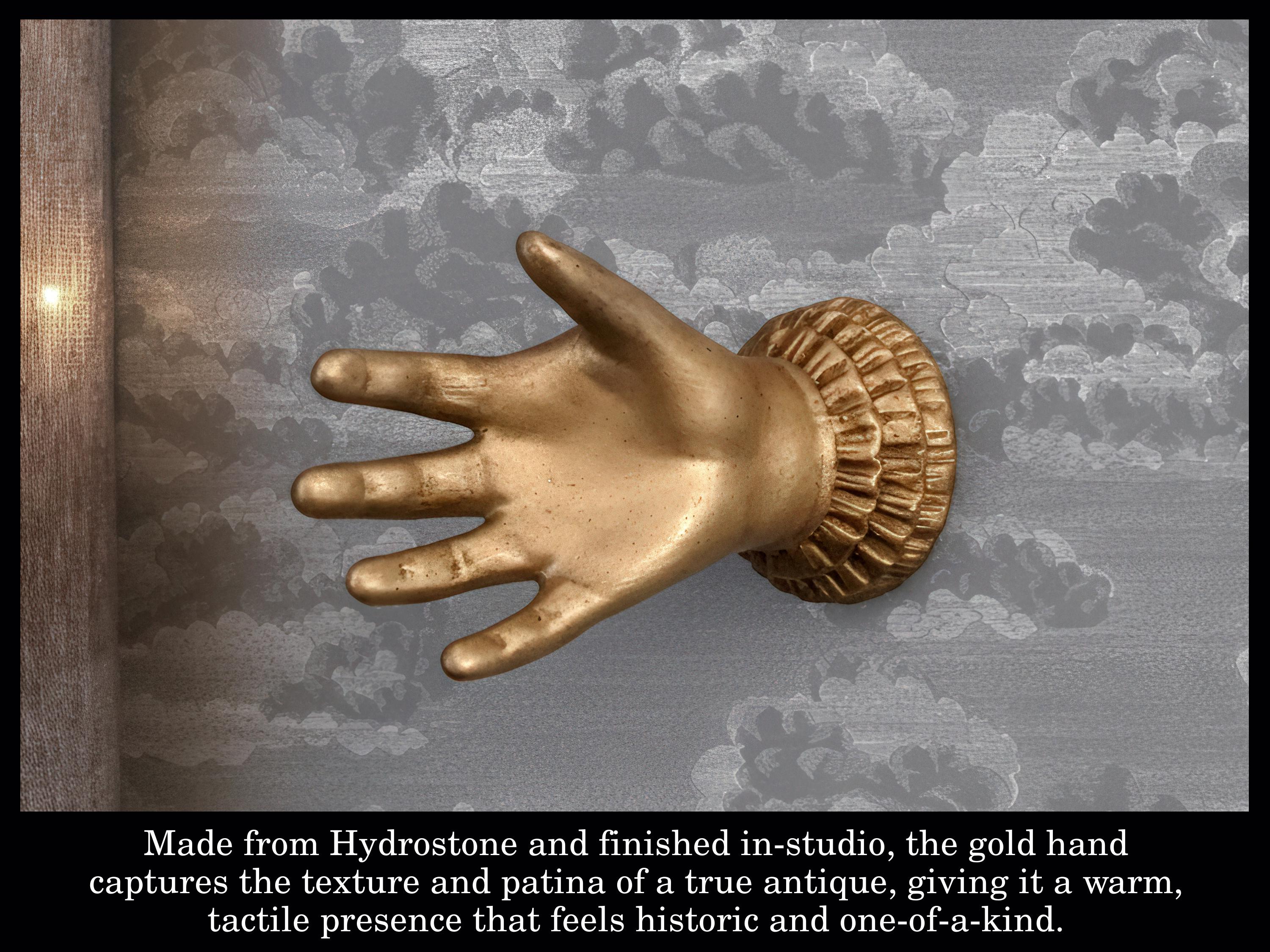 Made from Hydrostone and finished in-studio, the gold hand captures the texture and patina of a true antique, giving it a warm, tactile presence that feels historic and one-of-a-kind.