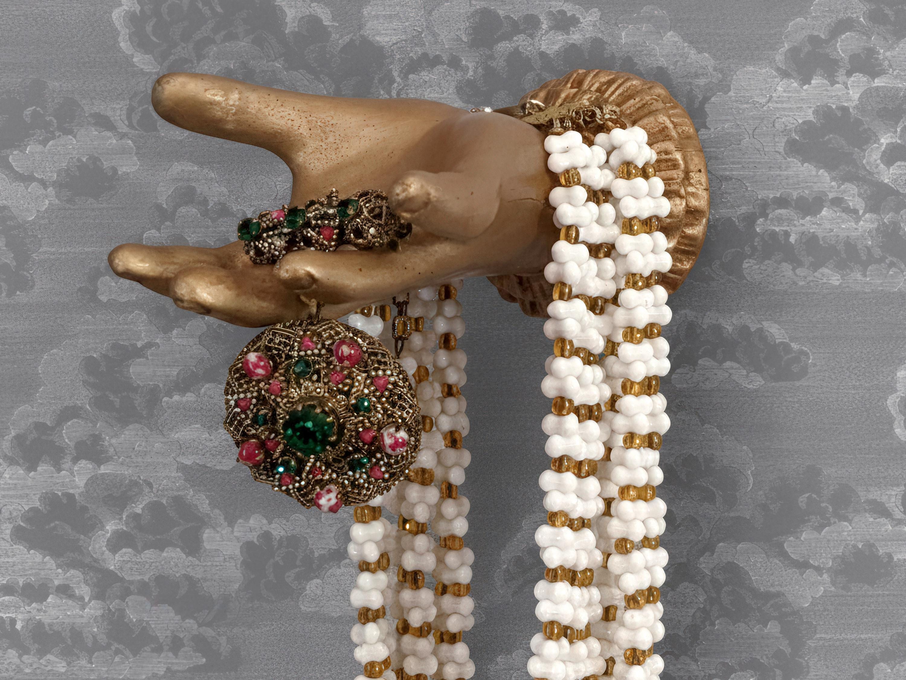 This hand is a handmade cast reproduction of a rare antique original that once held a seashell, long since lost to time. Each piece is cast from the mold of that single antique hand and exists only through this studio. It was made to hold something, to offer something, and it still does.